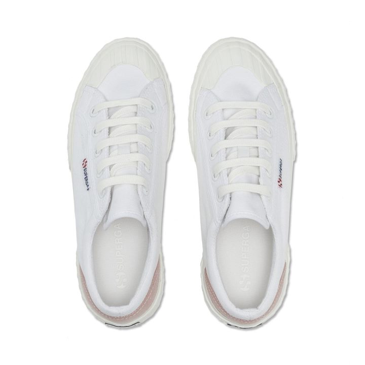 Superga 2630 Stripe Capitonné Blanc-rose Poussiéreux
