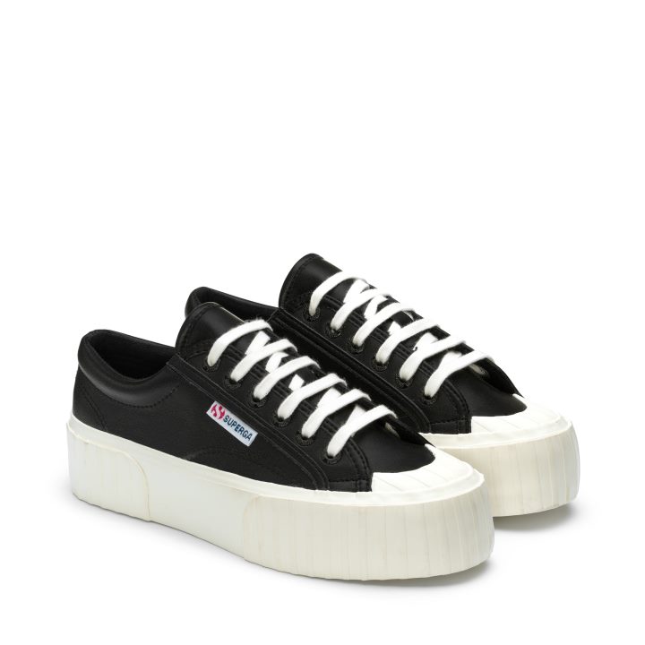 Superga 2631 Stripe Platform Vegan Fau Noir-blanc