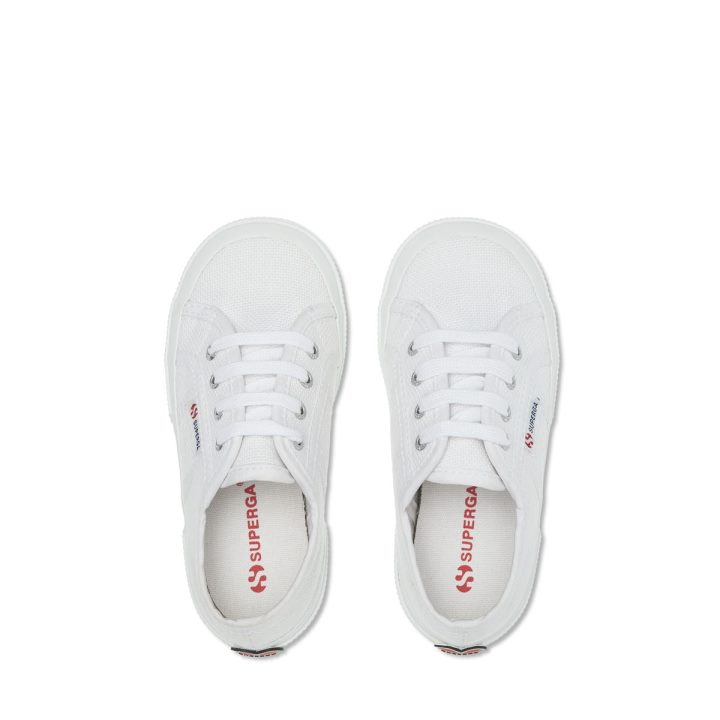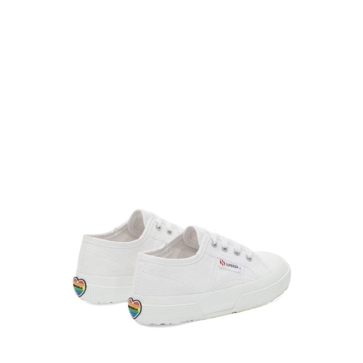 la Superga 2750 Pour Enfant Avec Tige En Coton Et Dentelle De Coton Aux Couleurs Aglet. Patch Cœur Superga En Micro Injection Et Semelle Extérieure En Caoutchouc Naturel Vulcanisé Effet Arc-en-ciel.